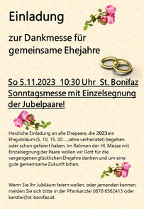 Die Pfarre gratuliert herzlich zum 25., 55. und 60. Ehejubiläum!